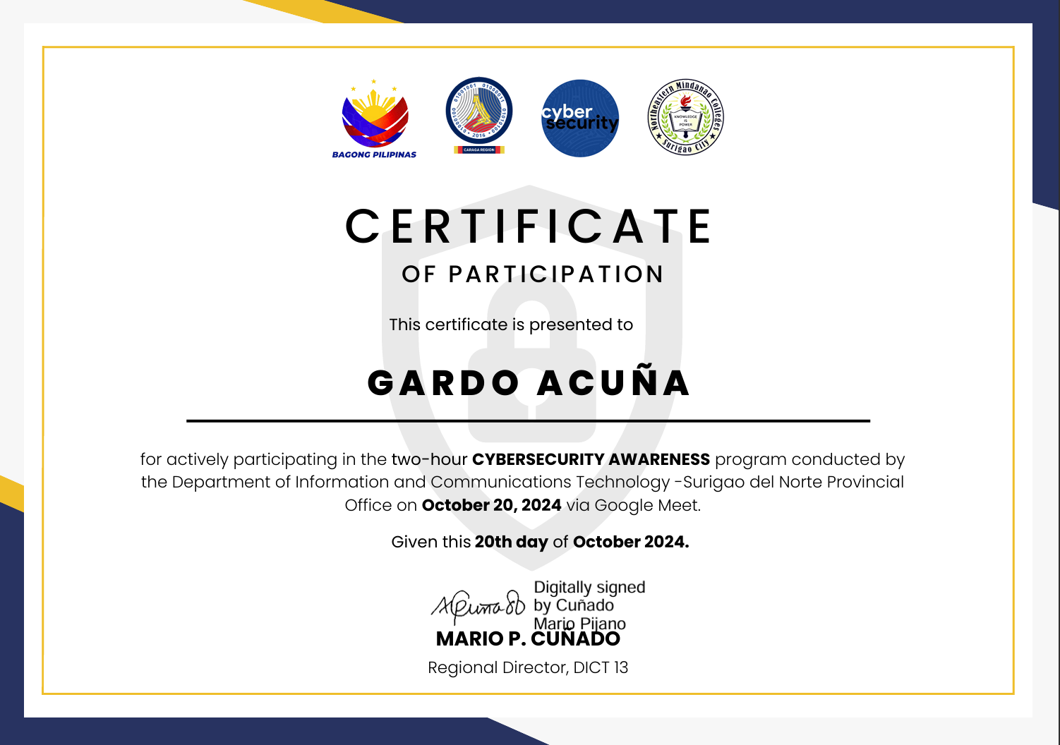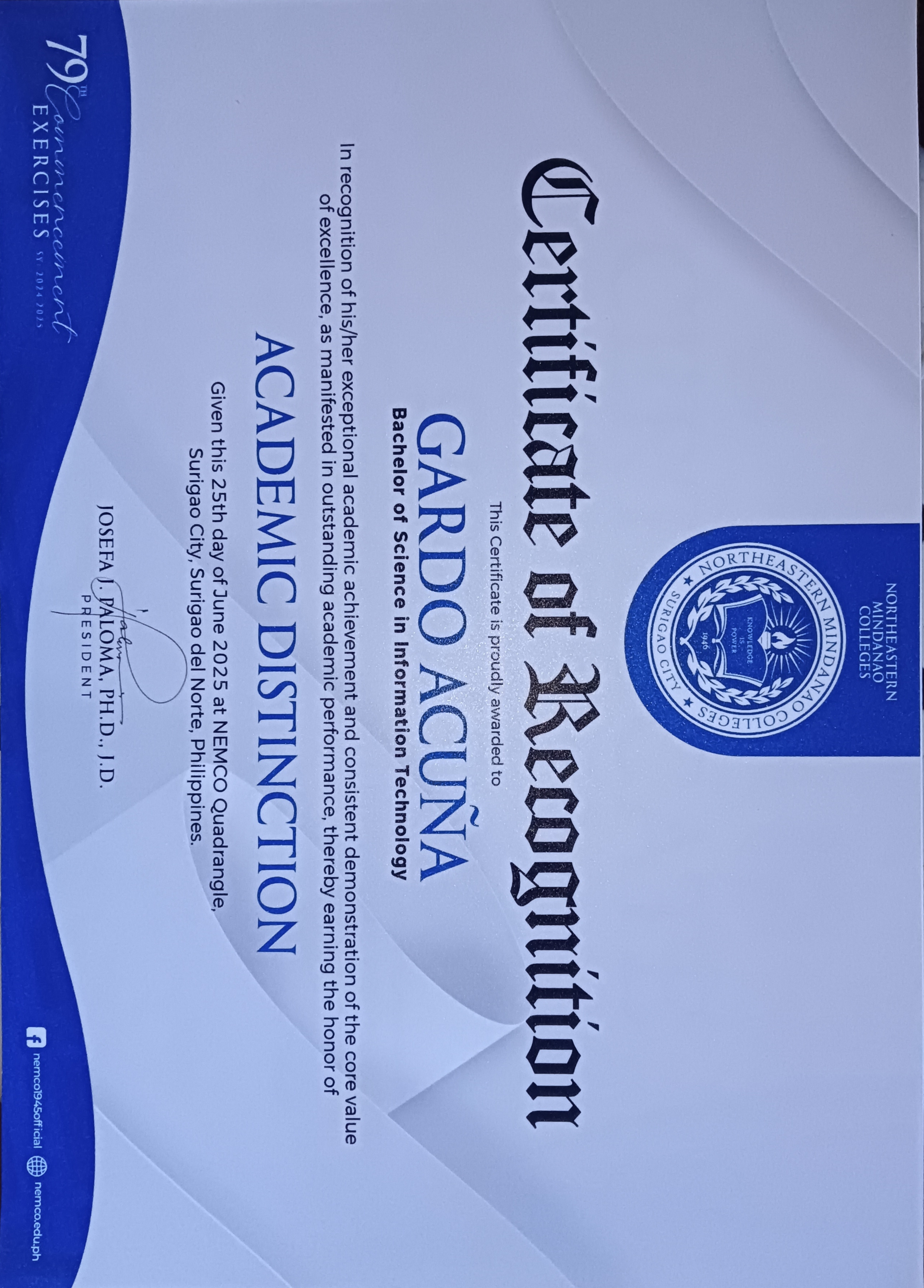 I’m Gardo Acuña, 24 years old, a recent IT graduate. I’m passionate about technology and creativity, that’s why I also do freelance graphic design on the side. This experience helped me improve my attention to detail, problem solving, and communication with clients. I’m now eager to start my career in a company where I can continue learning, grow professionally, and contribute to a positive and productive team environment. I'm driven to help businesses by providing versatile support in graphic design, customer service, and data management
